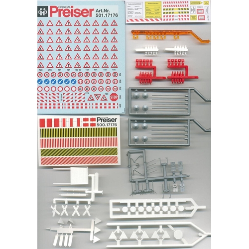 PF17176 未塗装キット 道路工事用具(道路標識,カラーコーン,他) 1/87 H約0.6-3.7cm デカール付