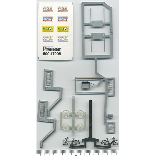PF17163 未塗装キット 自転車 1/87 自転車 H約1.5cm 2台/自転車スタンド H約2.0cm 2個入+台車、シール