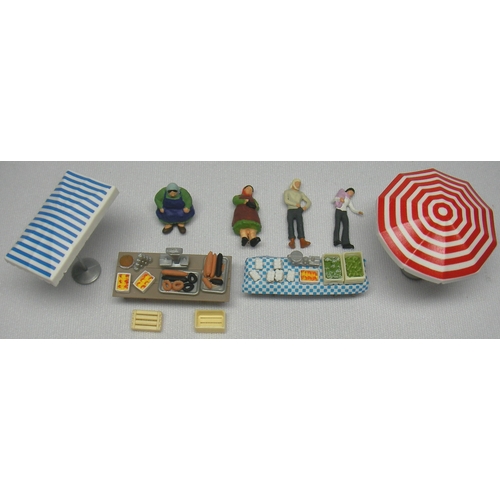 PF10052 露店(野菜、卵、ソーセージ他) 塗装済 1/87 H1.5-2.5cm 4体入