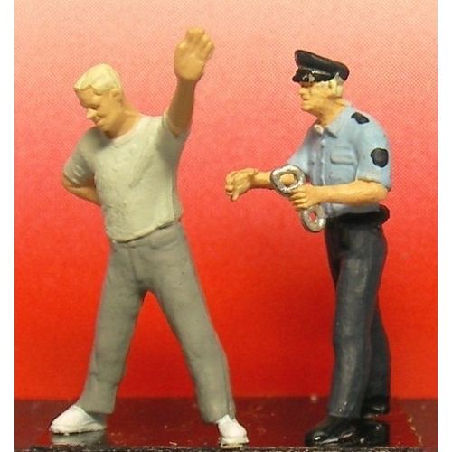 PF28119 犯人を逮捕する手錠を持った警察官 塗装済 1/87 H約2cm 2体入