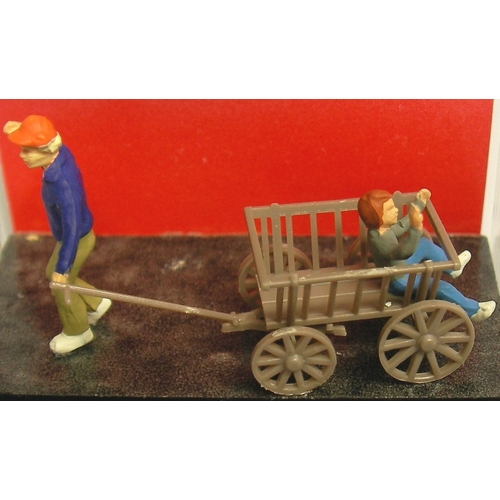 PF28112 カートを引く子供 塗装済 1/87 子供H約1.8cm/全体のL約3cm 2体+カート