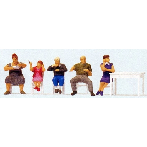 PF10577 食事をする家族 塗装済 1/87 H1.2-1.6cm 5体+テーブル、イス、食器