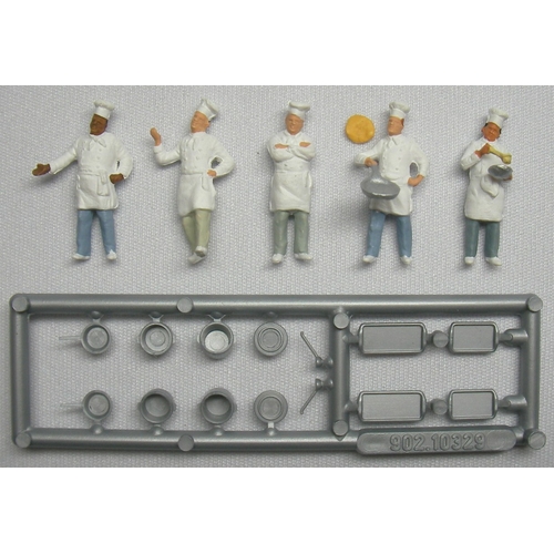 PF10330 コック(料理人) 塗装済 1/87 H約2.1cm 5体+ナベ、フライパン、トレー