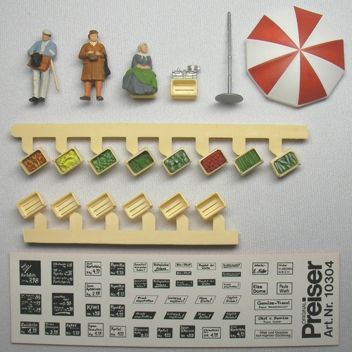 PF10337 露店(野菜、果物) 塗装済 1/87 人物H約1.5-2cm 3体+アクセサリー