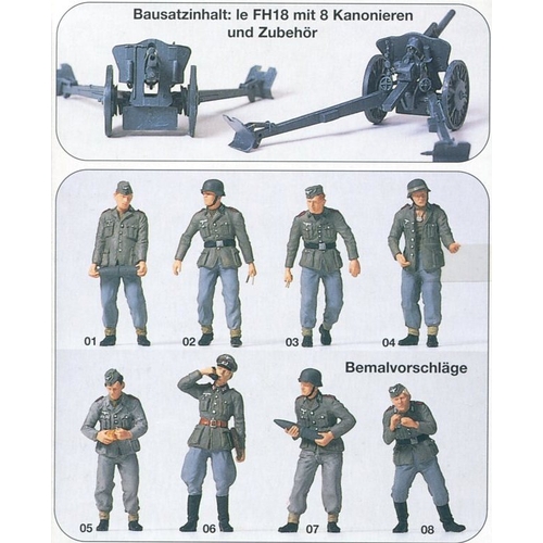 PF16514 ドイツ軍 10.5cm軽榴弾砲(leFH 18)と砲兵隊員 1939-45年 WW-II キット 1/87 人物8体(H約2-2.2cm)+アクセサリー
