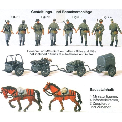 PF16547 ドイツ軍 馬と荷車で銃器などを運ぶ兵士 1939-45年 WW-II 未塗装キット 1/87 人物4体、馬2体、荷車4台