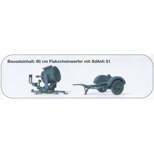 PF16566 ドイツ軍 60cmサーチライト/SdAnh 51.トレーラー 1939-45年 WW-II キット 1/87 トレーラーL約3.5cm 各1台入