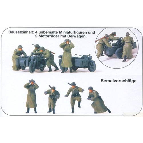 PF16580 ドイツ軍 オートバイ(KS 750.)/乗員 1939-45年 WW-II 未塗装キット 1/87 サイドカー付バイク 2台、人物4体、銃器、手榴弾