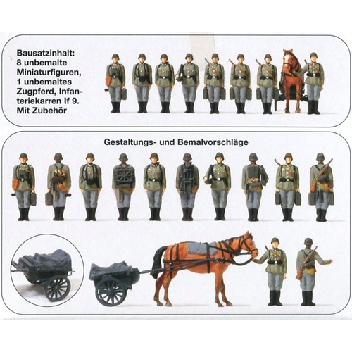 PF16585 ドイツ軍 迫撃砲チーム整列/馬車 1939-45年 WW-II 未塗装キット 1/87 人物8体、馬1体、荷車1台
