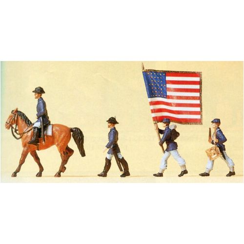 PF12052 軍旗と兵隊 アメリカ合衆国 南北戦争 1861-1865年 塗装済 1/87 H約2.0-4.2cm 4体+馬1体入 数量限定特価