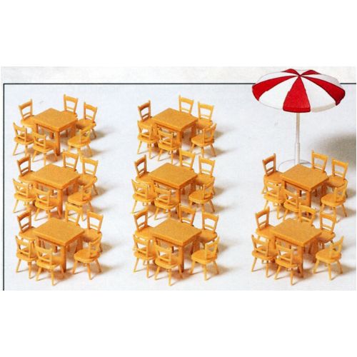 PF17201 未塗装キット テーブル/イスセット 1/87 テーブル H0.7cm 8個/イス H0.9cm 48個+パラソル1個入