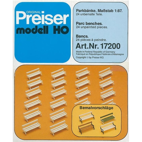 PF17200 未塗装キット ベンチ 1/87 H1.0cm/L2.1cm 24個入
