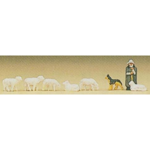 PF88577 ヒツジ/番犬/羊飼い セット塗装済 1/220 ヒツジ H約0.4cm/L約0.5cm