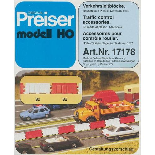 PF17178 未塗装キット 道路分離帯 1/87 H約1cm/L約2.4cm 赤8個、白8個