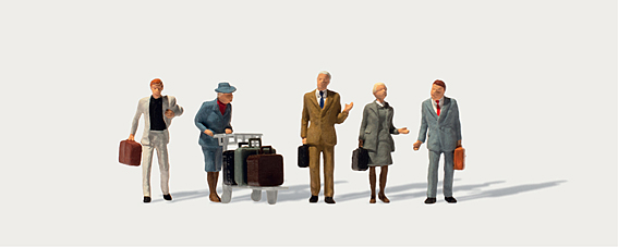 MF0212536 プラットホームにて 塗装済 1/87 H約1.7-2.2cm 5体+スーツケース+カート