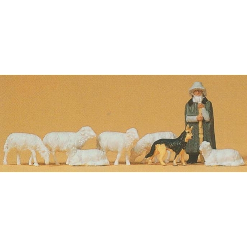 PF14160 ヒツジ/番犬/羊飼い セット 塗装済 1/87 ヒツジ H約0.9cm/L約1.3cm ヒツジ6体/番犬、羊飼い各1体入