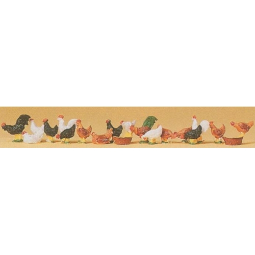 PF14168 ニワトリ セット 塗装済 1/87 H0.3-0.5cm/L0.5-0.7cm 18体入