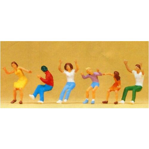 PF24664 遊園地で遊んでいる人々/回転空中ブランコ 塗装済 1/87 H約1.2ー1.7cm 6体入