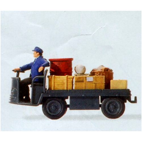 PF28146 荷物運搬用電気自動車とドライバー 塗装済 1/87 車体 L約3.8cm×H約2.0cm