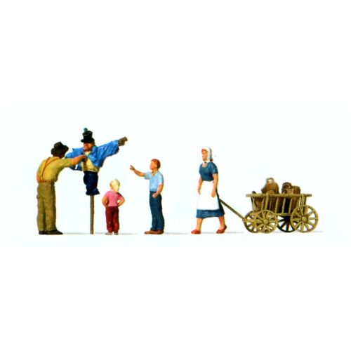 PF10650 カカシを立てている人々 塗装済 1/87 大人H約2cm 2体+子供2体+カカシ、荷車