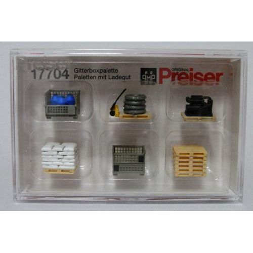 PF17704 倉庫、工場セット(パレット、カゴ、荷物他) 塗装済完成品 1/87 格子カゴ 約1.4×0.9×1.1cm パレット 約1.4×0.9cm