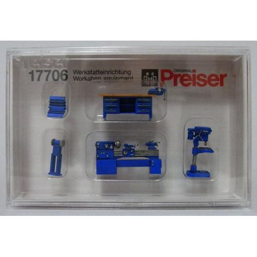 PF17706 工場用具(作業机,グラインダー,他) 塗装済完成品 1/87 机H約1cm/W2.3cm