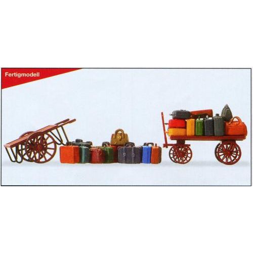 PF17705 荷車と荷物セット 塗装済完成品 1/87 荷物なし荷車 L約2.5cm、荷物付荷車L約4.0cm バラ荷物15個