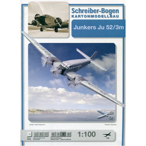 SB739 ユンカース Junkers Ju 52/3 m 1/100 中級者向きペーパークラフトモデル(組立式)