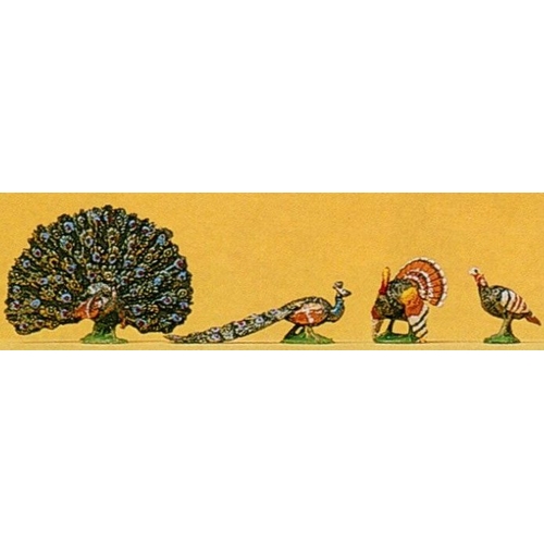 PF10166 クジャク/七面鳥 塗装済 1/87 H約0.7-1.5cm/L約0.9-2.2cm 4体入