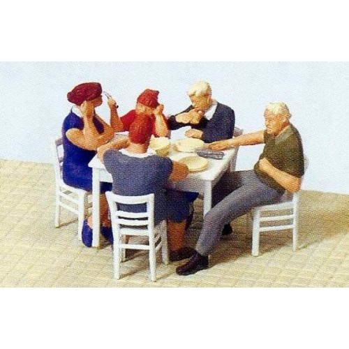 PF10577 食事をする家族 塗装済 1/87 H1.2-1.6cm 5体+テーブル、イス、食器
