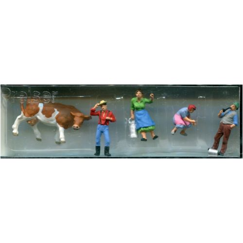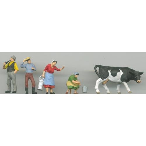 PF10044-1 ファーマー/牛(白/黒) 塗装済 1/87 H約1.5-2.3cm 4体+牛1頭