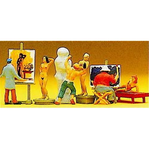 PF10106 画家/彫刻家 塗装済 1/87 H約2cm 画家2体/彫刻家1体/女性のモデル3体 計6体入