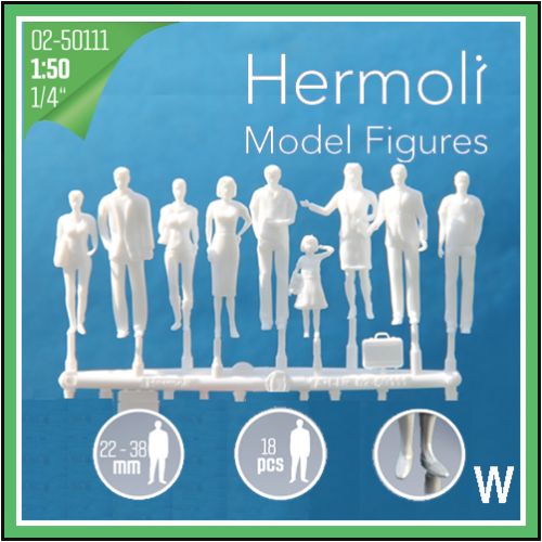 SZ02.50111.18 未塗装人物 立 1/50 H約22-38mm 白 18体入(9ポーズ)