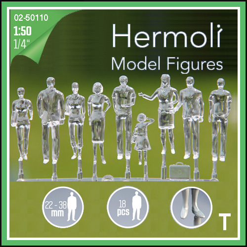 SZ02.50110.18 未塗装人物 立 1/50 H約22-38mm 透明 18体入(9ポーズ)