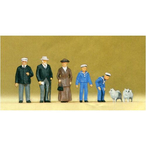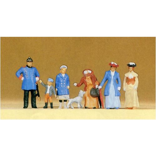 PF12131 通行人と警官 1900年頃 塗装済 1/87 H約1.3-2.2cm 6体+犬1匹入