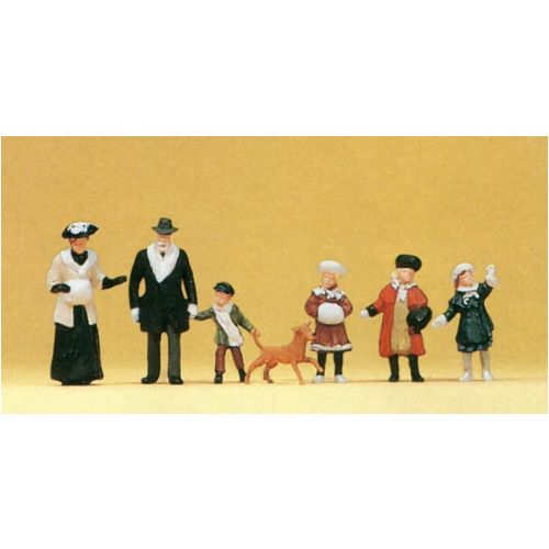 PF12184 通行人 (冬服)1900年頃 塗装済 1/87 大人H約2.0cm 6体+犬1匹