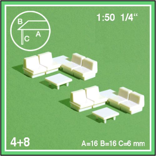 SZ55.52417.2 未塗装 応接セット (ホワイト) 1/50 イス H1.5cm 8脚+テーブル4台