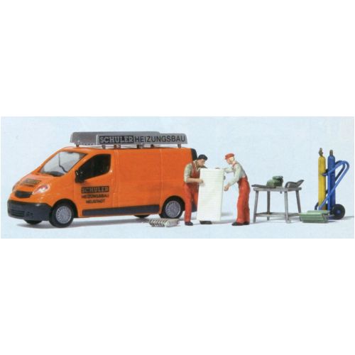 PF33259 設備工事作業車(Opel Vivaro)と作業員 塗装済 1/87 車1台(L約5.5cm/H約2.5cm)、人物2体(H約2.0cm)+アクセサリー 数量限定特価