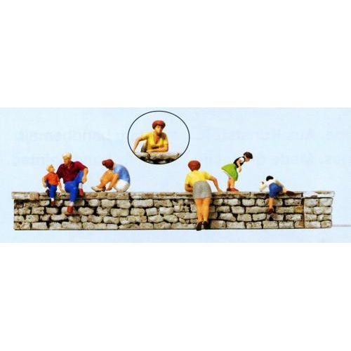 PF10615 石垣の上で遊ぶ人 塗装済 1/87 H約0.7-1.8cm 6体+石垣(W0.6/L7/H1cm)2本