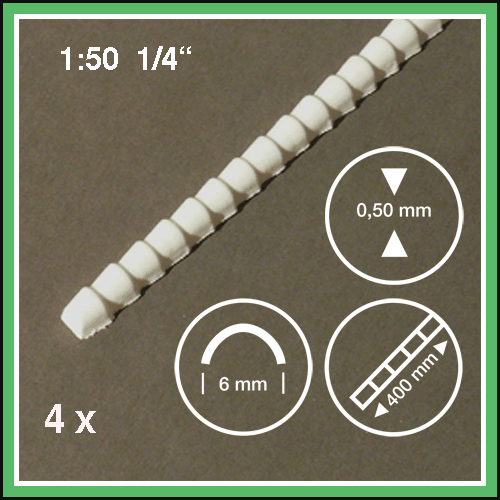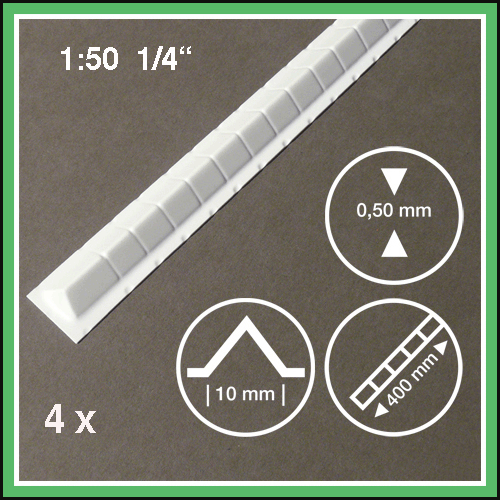 SZ28-5541051 ポリスチレン棒状材料 屋根棟瓦 (ホワイト) 1/50 約6×400mm/厚0.5mm 4本入