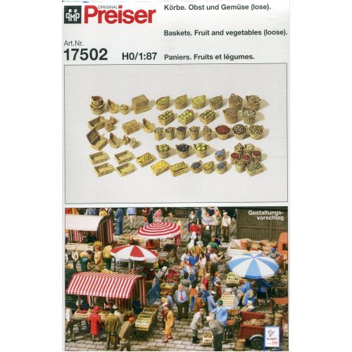 PF17502 未塗装キット 野菜、果物バスケットセット 1/87 H約0.3-0.7cm