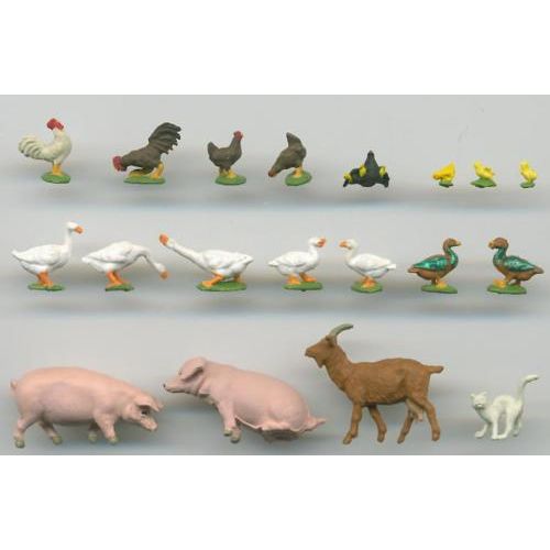 PF72414 ヤギ/ブタ/ネコ/ガチョウ/アヒル/ニワトリ/ヒヨコ 家畜セット 塗装済 1/72 ヤギ H1.5cm/ブタ H約0.9cm/アヒル L約0.5cm