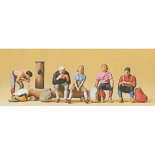 PF79162 休憩中のハイカー 塗装済 1/160 H約1.1cm 5体入+水飲み場、ベンチ