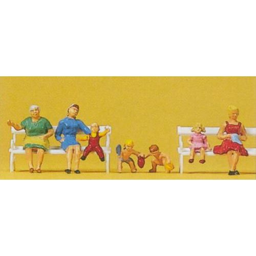PF10051 ベンチに座った母と子供 塗装済 1/87 H0.7-1.5cm 7体入