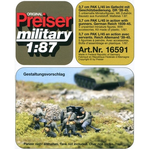 PF16591 ドイツ軍 3.7cm対戦車砲(PAK L/45)と砲兵隊員 1939-45年 WW-II 未塗装キット 1/87 人物5体(H約1.5cm)+銃器、手榴弾他