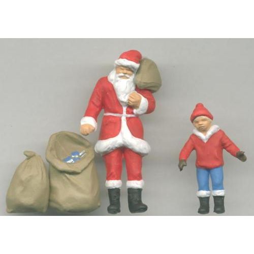 PF65335 サンタクロースと子供 塗装済 1/43 サンタH4.2cm 1体入/子供H3cm 1体入+プレゼント袋