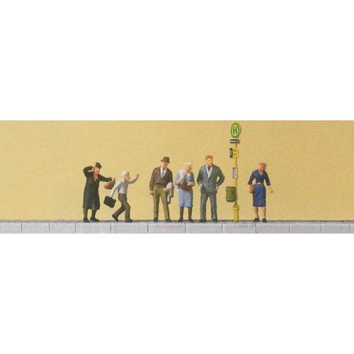 PF79148 バス停でバスを待つ人 塗装済 1/160 H約1.1cm 6体+バス停、ベース