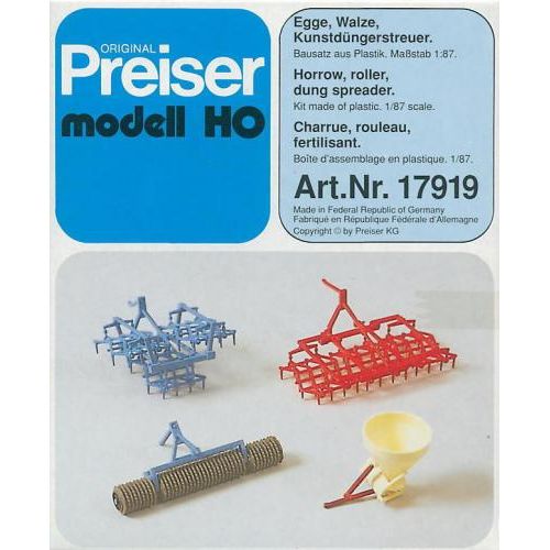 PF17919 組立式キット ハロー(砕土機)、地ならし機、肥料散布機 1/87 計4台入