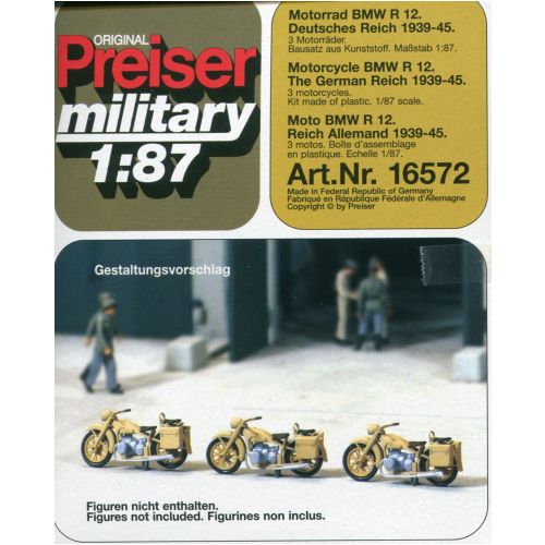 PF16572 ドイツ軍 オートバイ(BMW R 12) 1939-45年 未塗装キット 1/87 L約2.5cm バイク 3台入