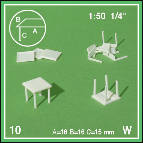 SZ55.20801.10 未塗装 正方形テーブル 脚が四角いタイプ (ホワイト) 1/50 W1.6cm/H1.5cm 10台入